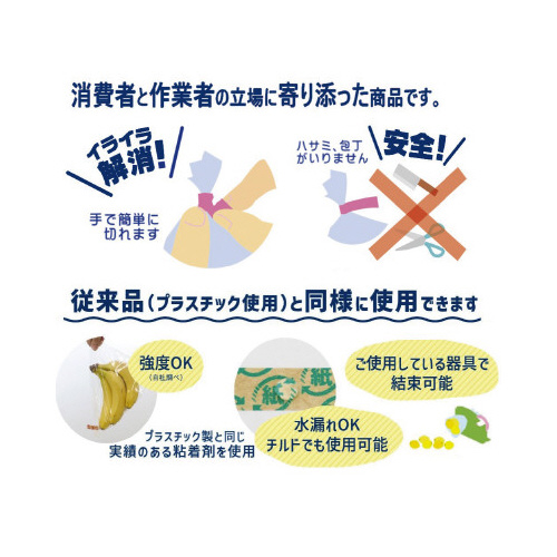 ※テープ基材に耐水和紙を使用しておりますが、結束後の水濡れや結露にも強く、防汚効果もあり、安心設計となります。
