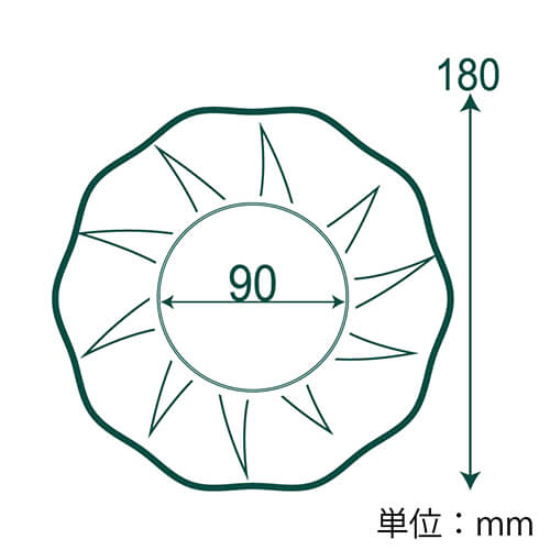 お花の形に開いたようなフォルムで、サイズは径18cmです。