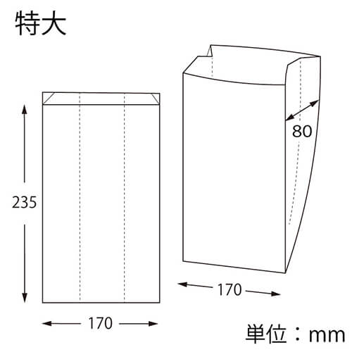 たっぷり入る横マチ付の耐油性袋です。