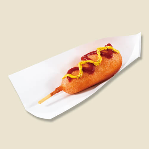 パッと開く紙トレーです。開いた状態で紙コップのように重なっています。アメリカンドックなどにおすすめです。