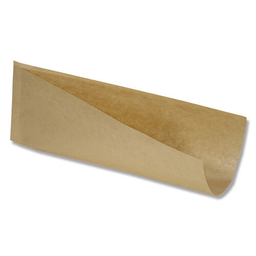 四辺のうち二辺の口があいたタイプのホットドッグ袋。サイズは幅250×長100mmで、クラフト色タイプです。テイクアウトにいかがでしょうか。