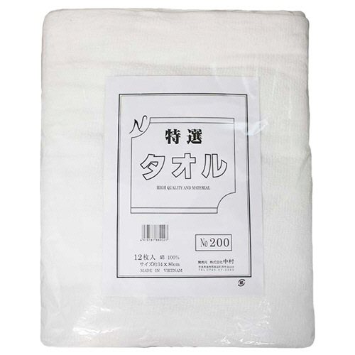 業務用フェイスタオル No.200 標準 約34×80cm 白 1パック(12枚) 【5-8営業日遅延】
