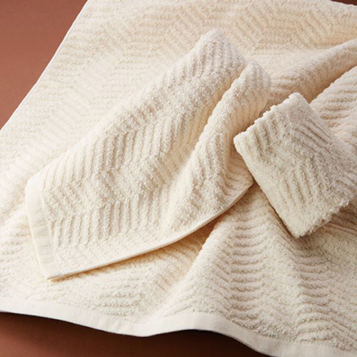 ●吸水性、毛羽落ち、色落ちなどが高いレベルで保証され、安心して使用することができるヘリンボーンフェイスタオル。