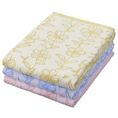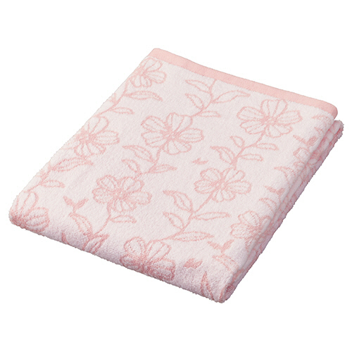 無撚糸グレースフラワー バスタオル ピンク 1枚 【5-8営業日遅延】