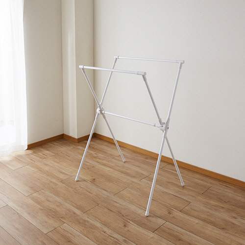 ●干す量に合わせて調節できる便利な伸縮式のX型物干し。シングルの布団が2枚干せます。
