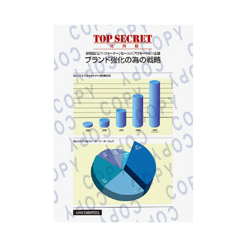 社外秘資料などの重要書類の複製・偽造を予防する特殊用紙。コピーをとると、コピーした面に「複写」「COPY」の文字が浮き出し、偽造を防ぎます。