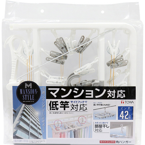 ●サイドフック付で、ズボンやシーツなど丈の長い洗濯物を干す時や、マンション等のベランダの低い物干し竿に干す時に便利です。