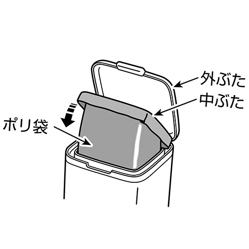 ●ワンタッチでポリ袋を押さえる中ブタがついているので、セットが簡単です。