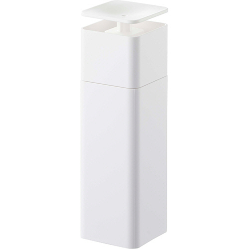 ●中身の見えないシンプルなデザインで生活感をオフ。片手で出せるディスペンサー、色はホワイトです。