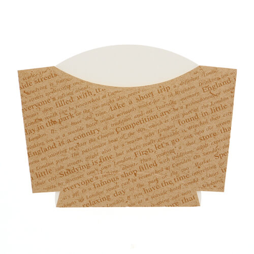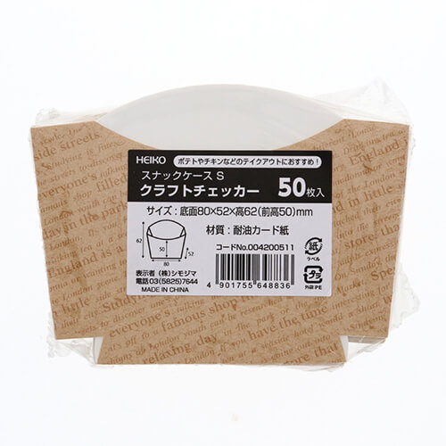 フライドポテトやチキンなどのテイクアウトに便利な折りたたみ式のカップケースです。内側耐油加工です。サイズは底面80×52×高62(前高50)mmです。