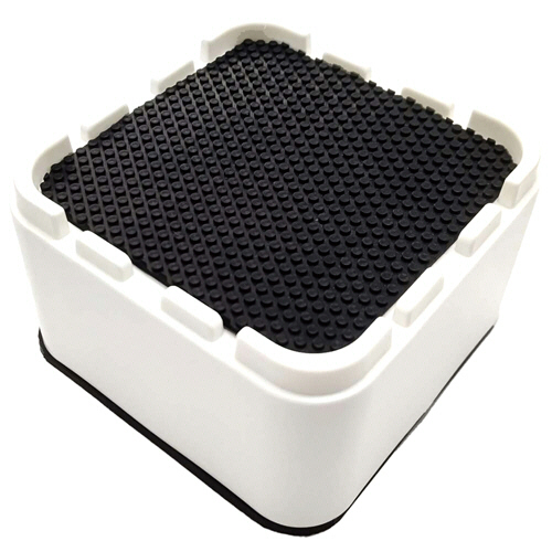 ●単体で実質約5cm高くなります。2個重ねる(※)ことにより約10cm高くすることができるので、防水パンやトレイ等から飛び出した設置も可能です。重ねた時に、上下がしっかり固定される構造です。