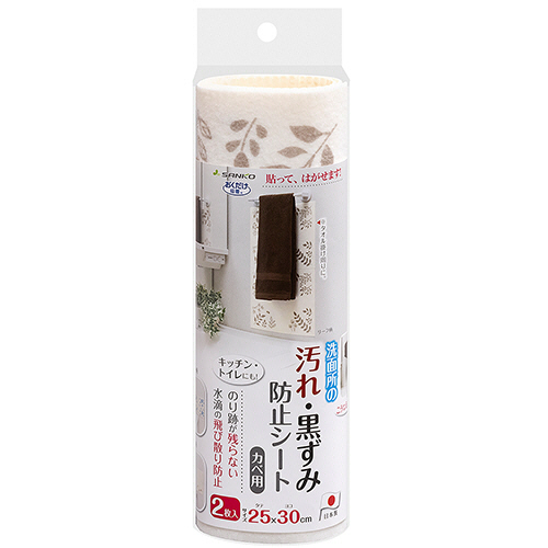 ●洗面所のタオル掛け近くの壁に貼って汚れを防ぐシート。リーフ柄、2枚入です。