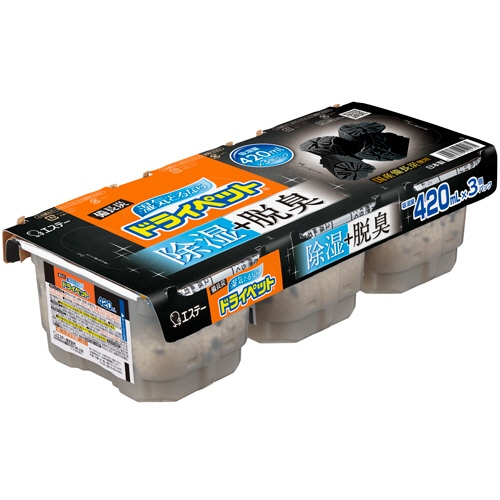 除湿剤に備長炭と活性炭を特殊配合しているので、湿気を取りながら、気になるニオイを脱臭します。