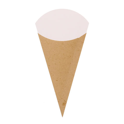 フライドポテトなどのテイクアウトに便利な三角型の袋。サイズは幅110×高220mmで、内容量は約170ccです。テクスチャ感のあるクラフト色となっています。