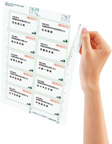 ラベルがつかみやすく、台紙から素早くはがせる「はかどりカット」採用!Word対応、ワープロ仕様タイプ。