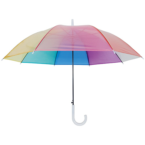 ●レインボー配色がカラフルでオシャレなジャンプ式ビニール傘です。