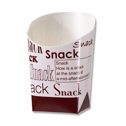 ポテトやチキン、ポップコーン等を入れるカップタイプのスナックカートンです。内側耐油加工。●電子レンジ使用不