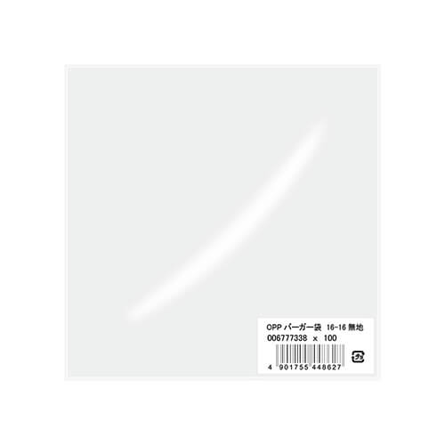 4辺のうち2辺が開くタイプのハンバーガー用の透明袋です。食品衛生法規格基準適合商品です。サイズは厚0.03×幅160×高160mmです。