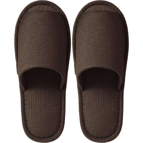 インドネシアの名門インテリア生地メーカーATEJA社製の生地採用。丈夫で立体感のあるドビー織の外縫いスリッパ。