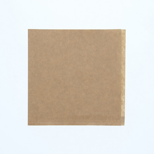 テイクアウトにぴったり!ハンバーガーや肉まんなどが入る四辺のうち二辺の口があいたタイプの袋です。袋の上部が7mm短くなっており、袋が開きやすくなっています。サイズは幅160×長160mmです。