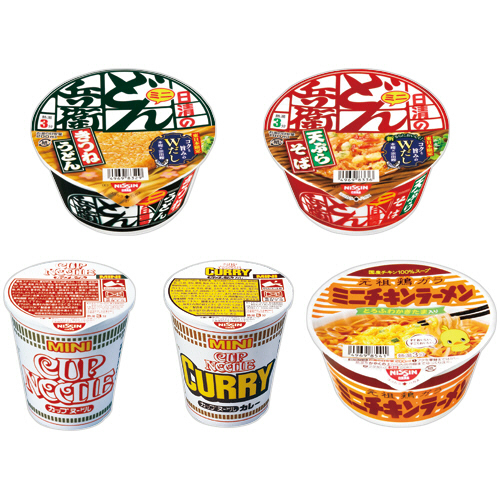 ●内容量/どん兵衛きつねうどんミニ(東):42g×6食、どん兵衛天ぷらそばミニ(東):46g×6食、カップヌードルミニ:36g×6食、カップヌードルカレーミニ:43g×6食、チキンラーメンどんぶりミニ:38g×6食