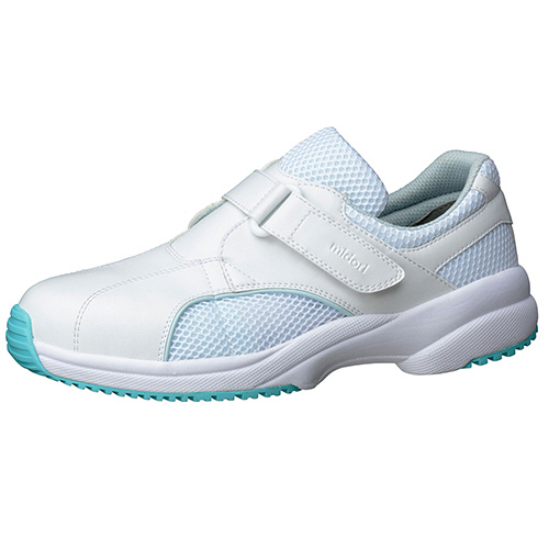 ゆったり設計にソフトな人工皮革の軽量の医療現場向けシューズ。