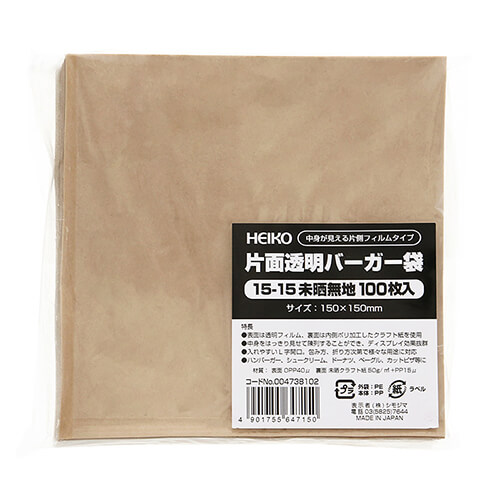 サイズは幅150×長150mmで、バーガーや総菜パンが入ります。