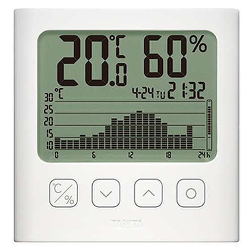 ●オートフィット機能搭載で、変化に合わせてグラフの縦軸調整と1目盛あたりの温湿度を4段階(温度:1/2/3/4℃、湿度:1/2/3/4%)に自動調整します。わずかな変化でも、一目で確認ができます。