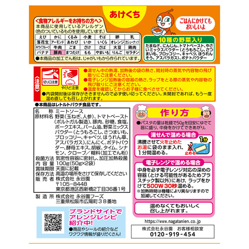 ●10種の野菜入りで、温めず、そのままパスタにかけてもおいしく召し上がれます。
