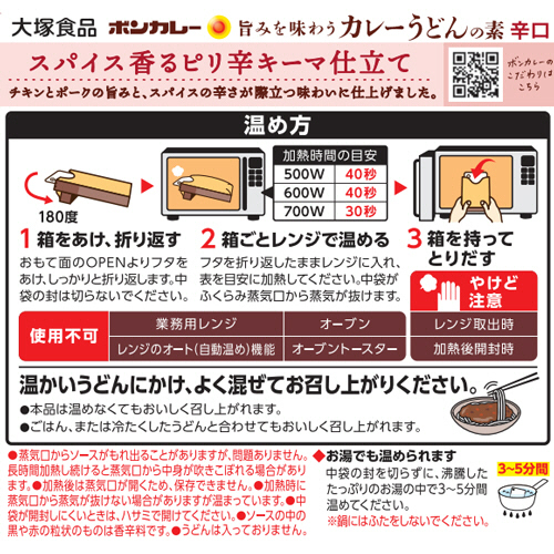 ●箱ごとレンジで温めて、うどんにかけてお召し上がりください。