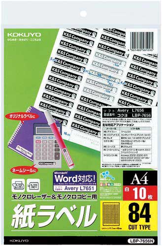 コクヨの定番ラベル!専用ソフトがなくてもWordとAccessだけでも簡単にラベル作成可能!モノクロプリンタ専用の紙ラベルです。