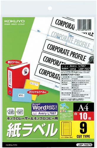 コクヨの定番ラベル!専用ソフトがなくてもWordとAccessだけでも簡単にラベル作成可能!モノクロプリンタ専用の紙ラベルです。