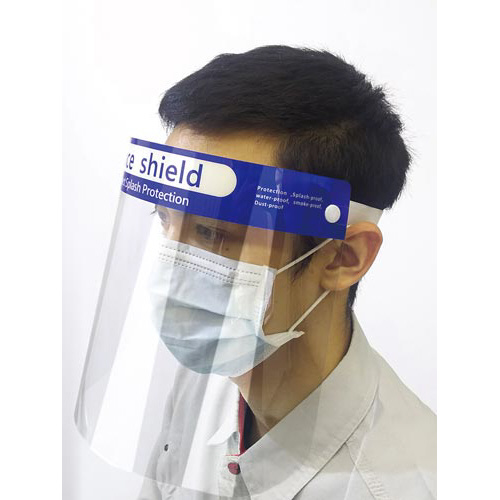 顔全体を覆い、飛沫・塵を防ぐ簡易式フェイスガード