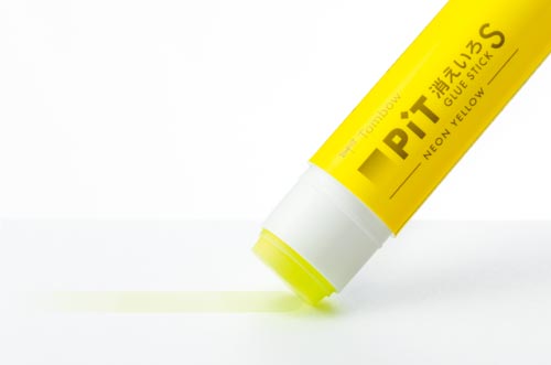 塗ったところが分かりやすい「ネオンイエロー」の消え色ピット。乾けばのり色は消えていきます