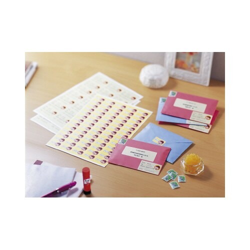 小さな文字やイラストも美しく印刷できます。インクジェットプリンタ用紙ラベルです。
