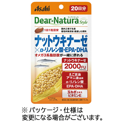 ●1粒にナットウキナーゼ2000FU(製造時活性)を配合。オメガ3系脂肪酸、玉ねぎエキスも一緒に摂れます。20日分(20粒)です。