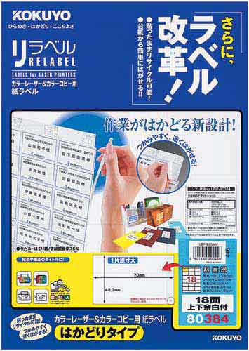 つかみやすく、すばやくはがせる「はかどりカット」を採用!しかも貼ったまま廃棄しても雑誌古紙などにリサイクルできる「リラベル」仕様です。レーザープリンタ用です。