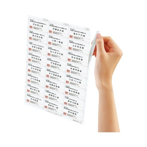 つかみやすく、すばやくはがせる「はかどりカット」を採用!しかも貼ったまま廃棄しても雑誌古紙などにリサイクルできる「リラベル」仕様です。レーザープリンタ用です。