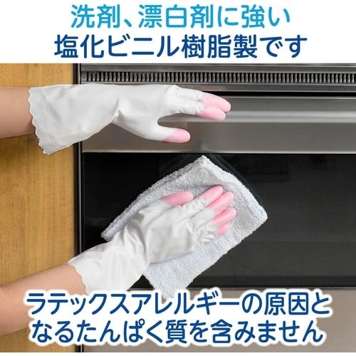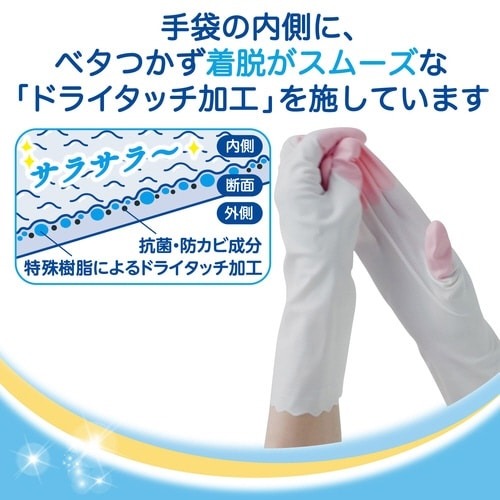 手袋全体の抗菌効果に加え指先は抗ウイルス加工。指先を強化しているので、やぶれにくく、丈夫です。うす手タイプなので細かな作業に適しています。