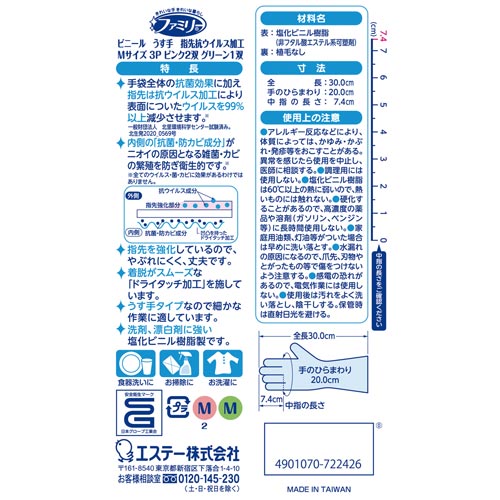ファミリー ビニールうす手指先強化 M 3双