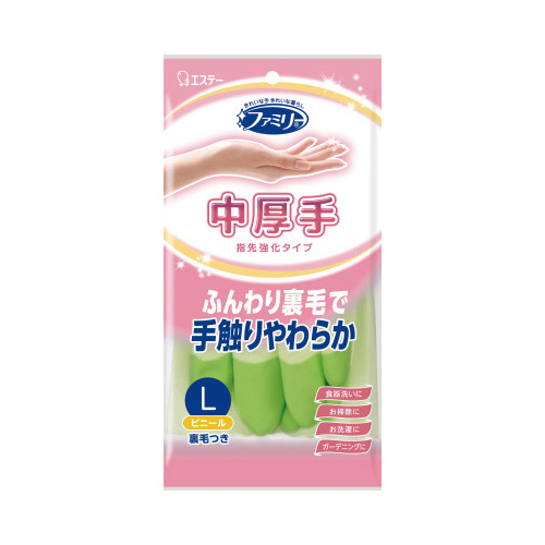 手袋表面には抗菌効果があり、指先を強化しているので、やぶれにくく丈夫です。裏毛つきで、ベタつかず、保温性に優れています。