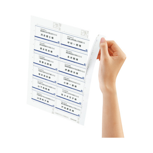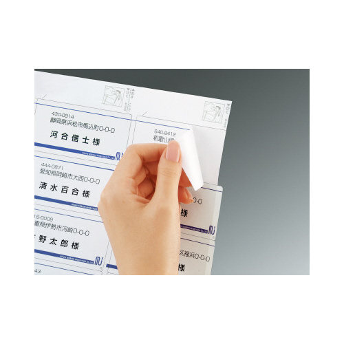 つかみやすく、すばやくはがせる「はかどりカット」を採用!しかも貼ったまま廃棄しても雑誌古紙などにリサイクルできる「リラベル」仕様です。インクジェットプリンタ用です。