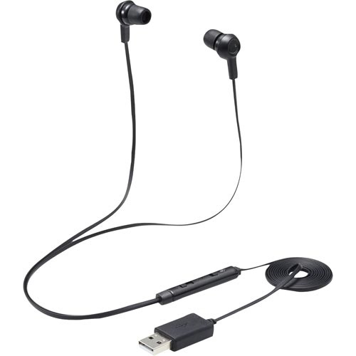 オンラインゲーム、ビデオ会議、音声チャットに!コンパクトに収納や持ち歩きができるイヤホンタイプで、手元でマイクのON/OFFが可能なミュートスイッチ搭載のステレオ耳栓タイプのUSBヘッドセット