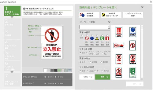 安全表示・銘板・管理ラベルなどを版代いらずで1枚から作成できます。1台でフリーカットと写真やイラスト入りのプリントができるので、工場や土建工事に必要な、現場に合った形・サイズの表示・標識が作れます。