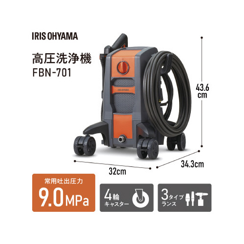 メーカー史上最大圧力の高圧洗浄機です。こびりついた汚れも落とせる超高圧タイプです。4輪で重心が低いので、倒れにくく使いやすいです。
