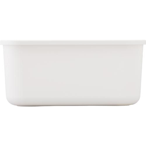 シンプルで丸みのあるやわらかなデザインのフタ付き積み重ねBOXです。フタにふちがあるので、積み重ねても安定感があります。フタはトレーとして使用でき、小物も置けます。丸洗いができるので衛生的です。