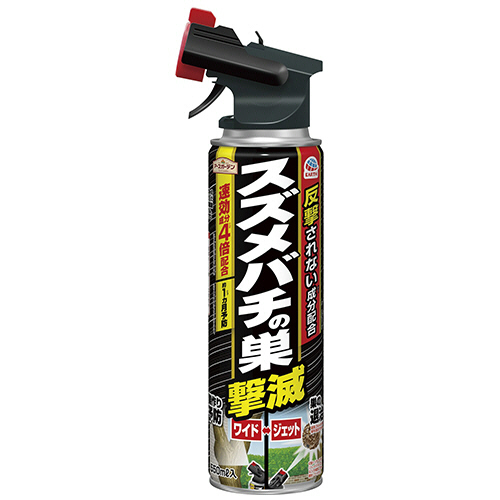 ●高濃度の速効成分に加え、反撃されない成分配合。巣の退治と飛び回るハチはジェット噴射、巣作り予防はワイド噴射と切替が可能。