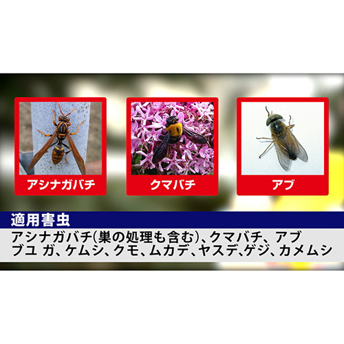 ●対象害虫/アシナガバチ、クマバチ、アブ、ブユ、ガ、ケムシ、クモ、ムカデ、ヤスデ、ゲジ、カメムシ