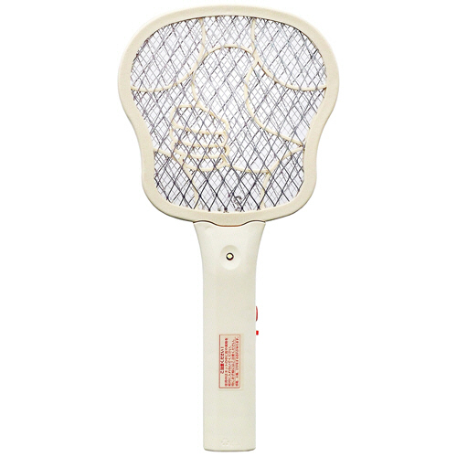 ●グリップ横のボタンを押すと正面のランプが光り、三層構造の中央ネットに高電圧が発生します。害虫に当てると、電気ショックによりイヤな虫をバチッと一撃で殺虫できます。