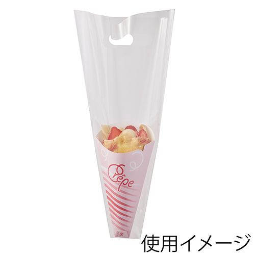 クレープなどの持ち帰り用の手抜きOPP袋です。三角型で安定して持ち運ぶ事が出来ます。ミニブーケ等にもお使い頂けます。ボードンOPPフィルム使用。